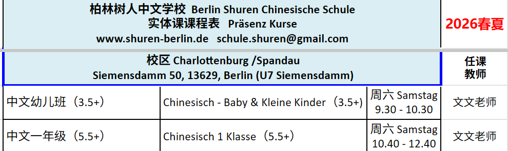 Berlin Shuren Chinesische Schule - Kurse Angebot